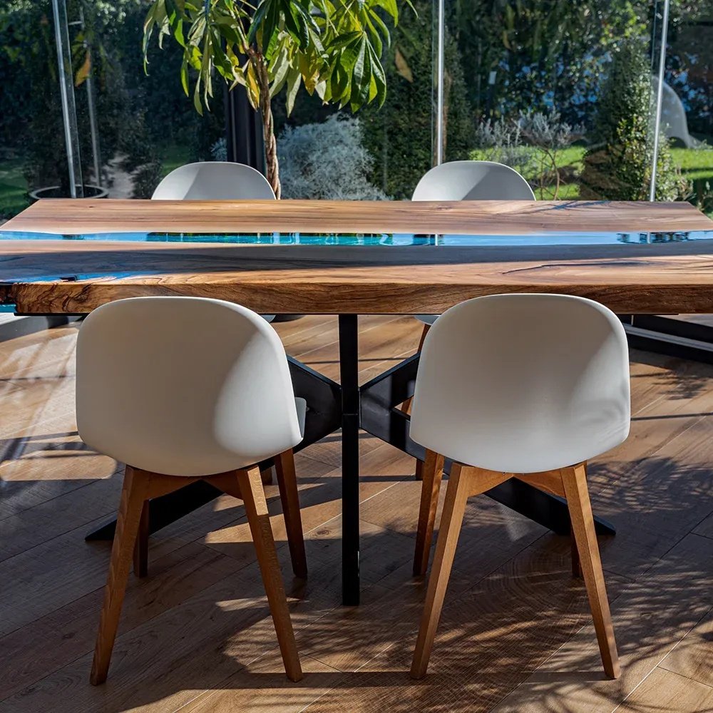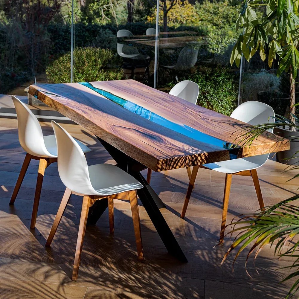 Alagoas-bord i europeisk valnöt och 6 cm tjock pigmenterad blå harts
