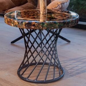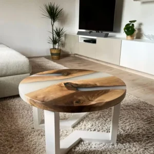 Exklusivt soffbord tillverkat av gamla järnvägssyllar i massivt trä, återvunna och behandlade för hand.