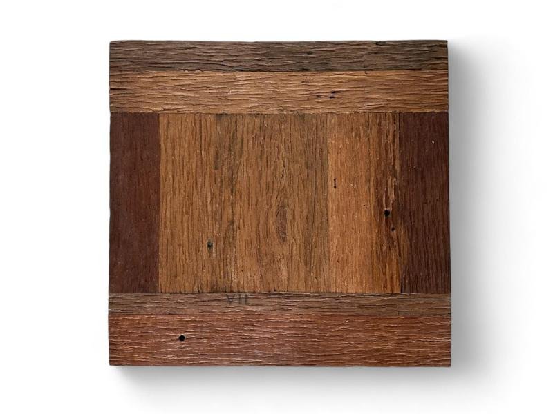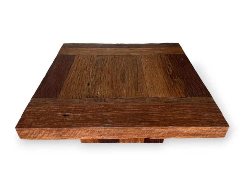 Detta antika soffbord är tillverkat av återvunnet trä från gamla järnvägssyllar.